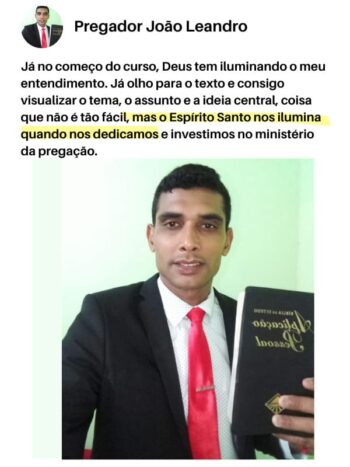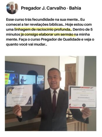 …Sempre tive vontade de aprender como elaborar um sermão… O Curso Pregador de Qualidade me proporcionou além do que esperava.